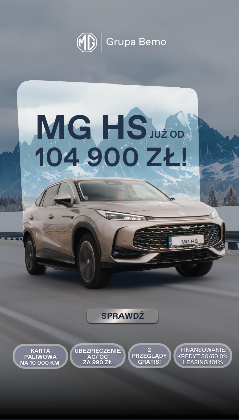 *OFERTA DOTYCZY MODELI Z ROCZNIKA 2024. DO WYBORU KLIENTA DECYZJA CZY DECYDUJE SIĘ NA PAKIET BENEFITÓW, CZY PROMOCYJNE FINANSOWANIE. Rzeczywista Roczna Stopa Oprocentowania (RRSO) dla reprezentatywnego przykładu bez kosztowego kredytu 50/50 u Dealerów MG na 03.04.2025 r. wynosi 0%. 50% wpłaty własnej przy zakupie pojazdu, pozostałe 50% płatne jednorazowo w 12 miesiącu. Kredytu udziela BNP Paribas Bank Polska S.A. (Bank) po ocenie zdolności kredytowej Klienta. Dealerzy MG współpracują z Bankiem i są umocowani do dokonywania czynności faktycznych i prawnych związanych z zawieraniem umów kredytu. Propozycja dotyczy modelu: MG3. Materiał nie stanowi oferty. MG Business Services jest nazwą handlową, pod którą BNP Paribas Bank Polska S.A. oferuje swoje usługi finansowe w sieci dealerskiej MG. MG Business Services jest zarejestrowanym znakiem towarowym na rzecz SAIC Motor Polska Sp. z o.o., a BNP Paribas Bank Polska S.A. jest uprawniony do korzystania ze znaku na podstawie odrębnej sublicencji. Kalkulację raty sporządzono dla modelu MG ZS Hybrid+, w oparciu o zmienną stopę procentową WIBOR 1M, która w dniu 03.04.2025 roku wynosiła 5,86%, powiększoną o marżę. Opłata wstępna 40%, okres finansowania 24 miesiące, wartość wykupu 19%. Przyznanie finansowania uzależnione jest od wyniku badania zdolności ubiegającego się o finansowanie do jego spłaty. Szczegóły finansowania u dealerów marki MG. MG Business Services jest nazwą handlową, pod którą BNP Paribas Leasing Services Sp. z o.o. oferuje swoje usługi finansowe w sieci dealerskiej MG. MG Business Services jest zarejestrowanym znakiem towarowym na rzecz SAIC Motor Polska Sp. z o.o., a BNP Paribas Leasing Services Sp. z o.o. jest uprawniony do korzystania ze znaku na podstawie odrębnej sublicencji
